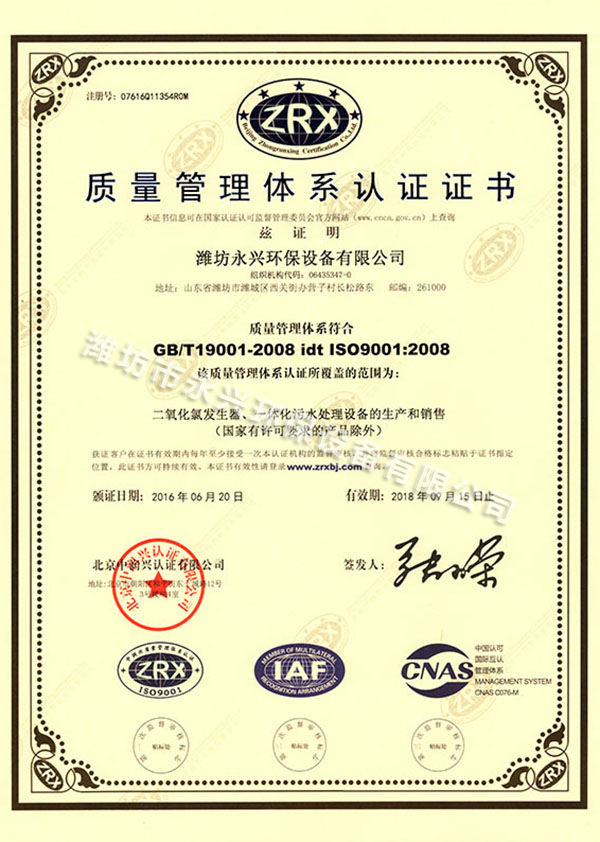 上一張:4化學(xué)法二氧化氯發(fā)生器衛(wèi)生批件 | 下一張:次氯酸鈉發(fā)生器外觀設(shè)計(jì)專利證書 |